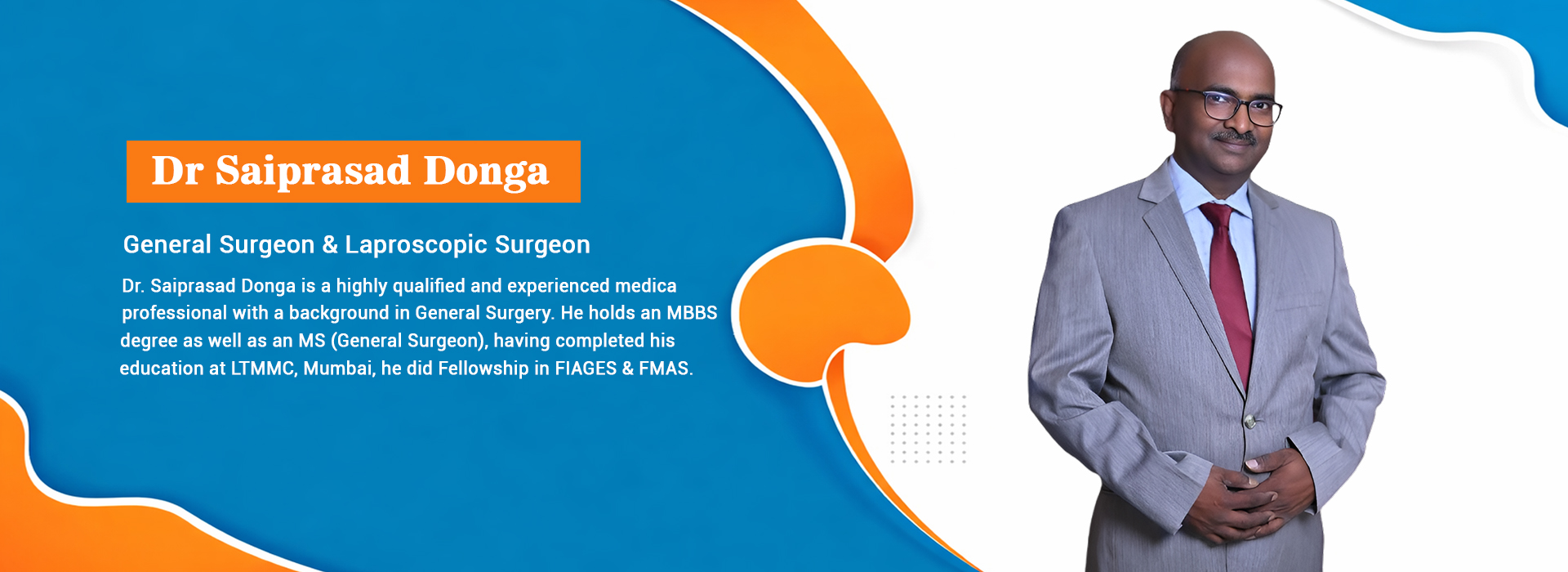 Dr. Saiprasad Donga is a highly qualified and experienced medical professional with a background in General Surgery. He holds an MBBS degree as well as an MS (General Surgery), having completed his education at LTMMC, Mumbai.